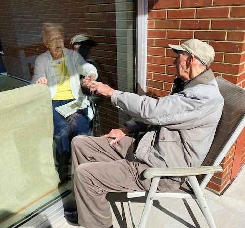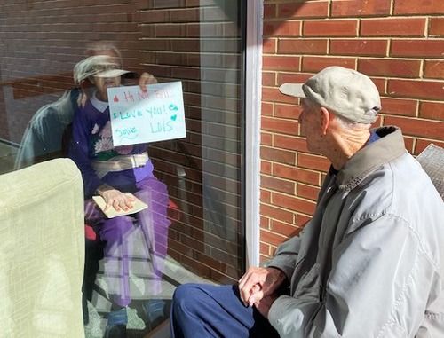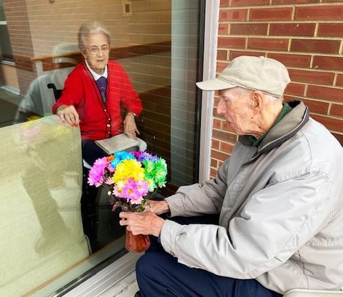 I was filled with joy by images of some of our oldest and youngest members this week (photos below). Three are of Bill and Lois Batts. In a Facebook post the staff at the Kenney reported that they "are making the most of these times with a little creativity. Although they live in different buildings and cannot visit each other hand-in-hand, they have enjoyed visiting each other through a window while talking on the phone. Bill even surprised his wife with flowers!" The fourth is of Izzy—who we usually see from the back making her way up the center aisle in worship—this time enjoying a hike with family before the Stay at Home order was issued.