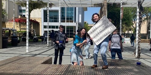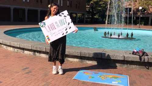 Two Western students and one FOCUS student advertising “Free Shoe Cleaning!”