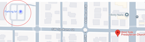 West Side Presbyterian is conveniently located on California Avenue SW at the cross street of SW Spokane Street. It is midway between the Admiral Junction and the Alaska Junction. Here is a map to our location.